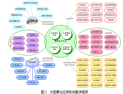 大型赛会的信息化建设总体包括三个部分:技术架构、应用系统、系统运维和服务。