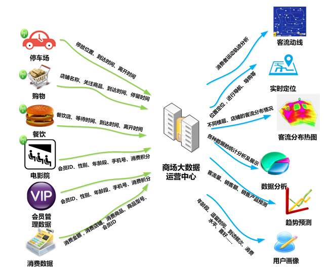 信息挖掘分析方面主要包括:客流预测,产品使用预测,潜在消费行为预测等等。