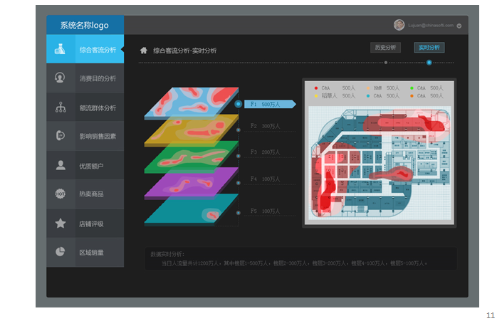 通过客流量的逗留地点和逗留时间,我们以热成像的技术展现出来,从而可以直观的分析出,消费者逗留的地点和店铺的客流量还有店铺与店铺之间的关联性。提供丰富的可视化的数据统计报表,为商场管理者提供决策支持,新技术的应用,可以引起更多的关注度,可以起到品牌推广和广告宣传的作用。在特定时间,特定的位置为客户实现精准的广告推送,对商场内部的商品租金价格,店铺经营状况,客流量进行监测与分析,有助于提高商场管理效率。